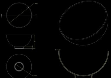 Below is an engineering drawing of a bowl, my first and probably last. Does it make this blog post look more professional? Are you impressed? Don't answer that. I just wanted to illustrate an example of a simple form that I enjoy making. This semi-spherical bowl really hits the spot.